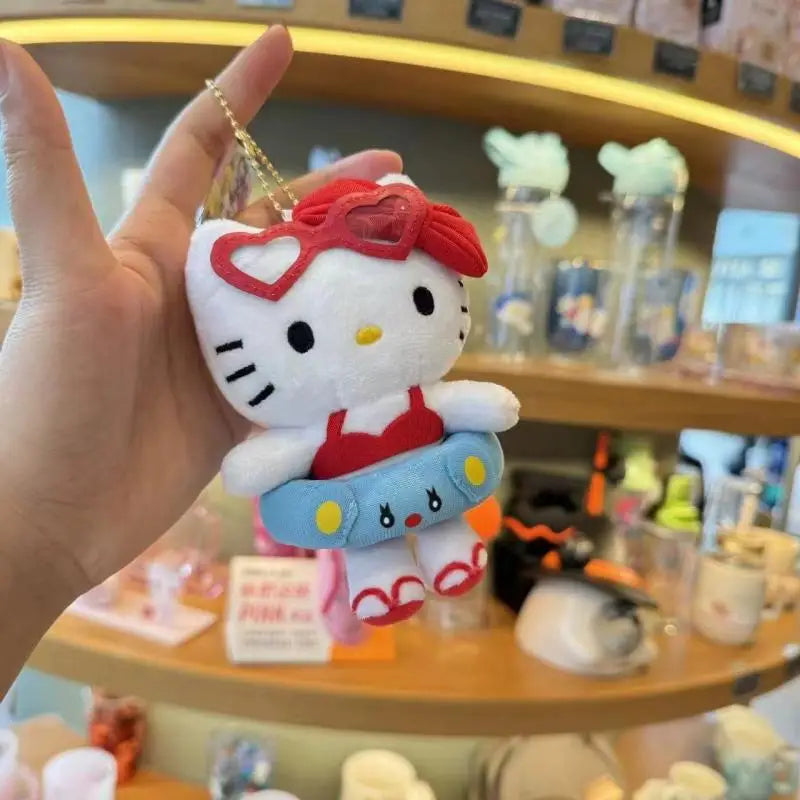 Sanrio Hello Kitty Cartoon Plush Series Doll Filling Keychain KT Cat Keyring Hawaii Swim Ring Series Dark Skin Toy Birthday Gift