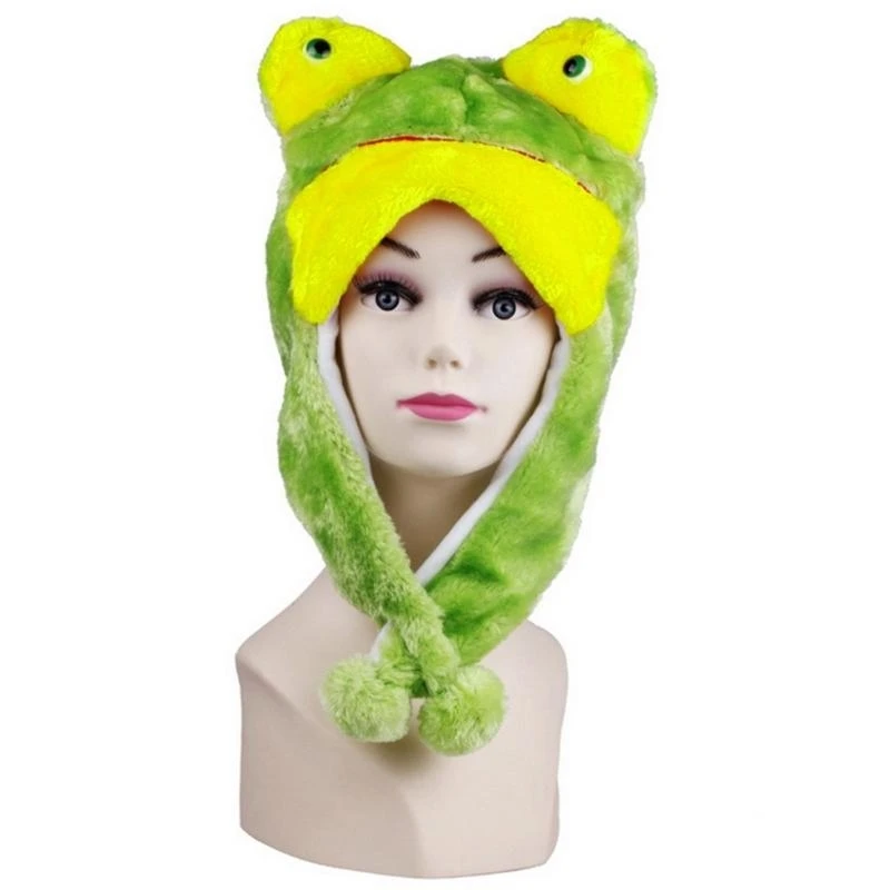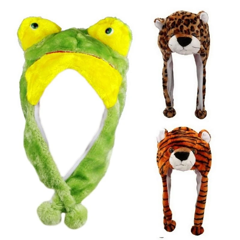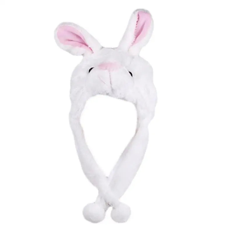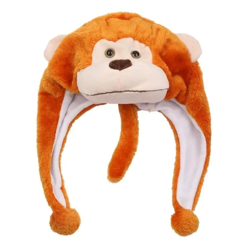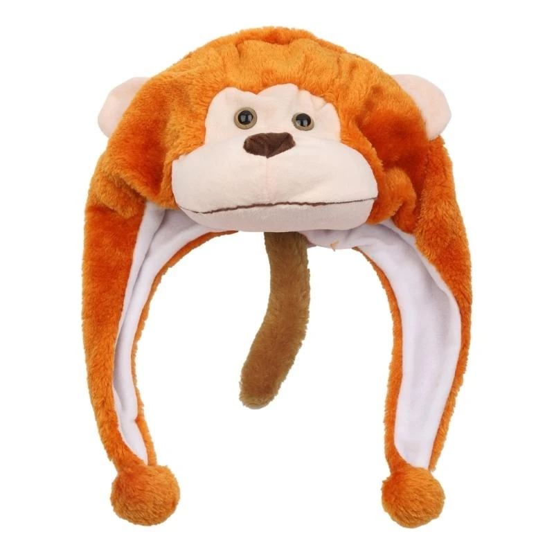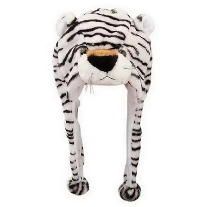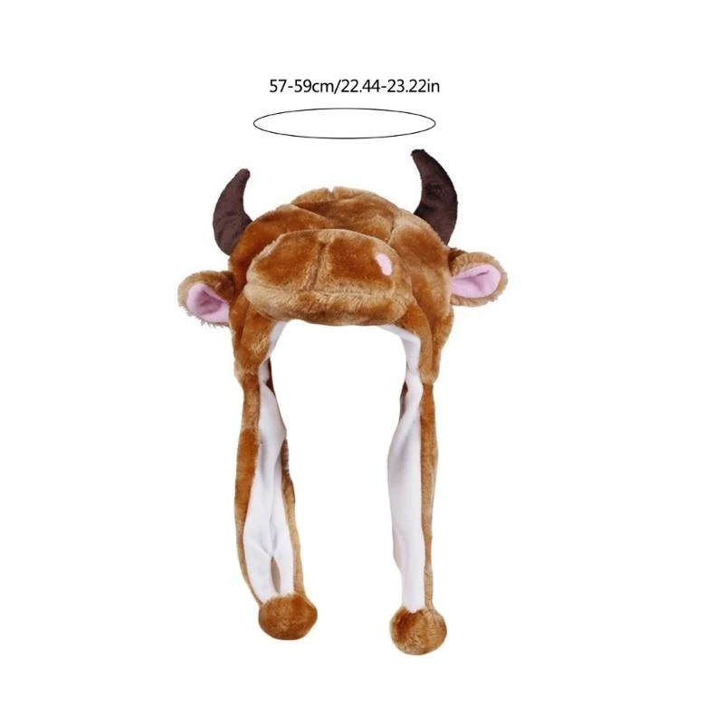 Short flaps to keep ears warm. Attached is 2 dangling flaps with poms designed to help keep ears warm.