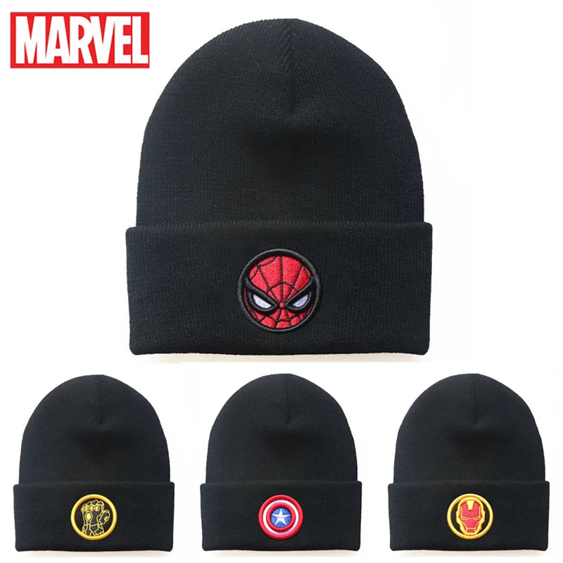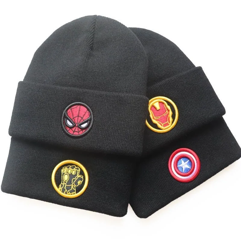 Marvel Knitted Hat Avengers Superheroes Spider Man Cartoon Autumn Winter Warm Cap Outdoor Skiing Play Snowball Sports Student