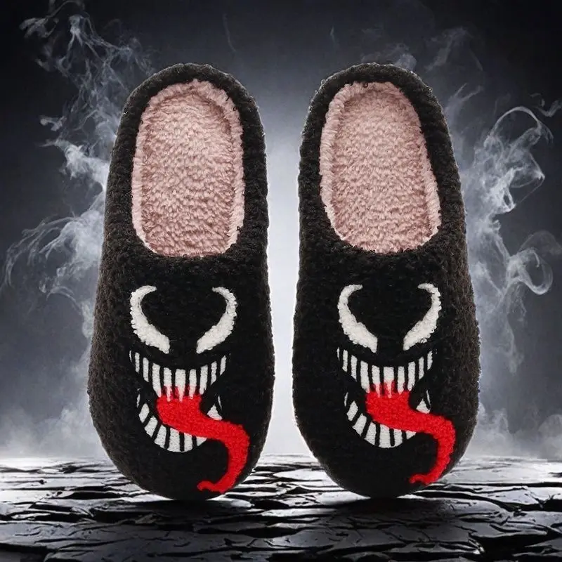 Autumn and winter men's non-slip, wear-resistant, lightweight, warm and personalized embroidered Marvel Venom cotton slippers