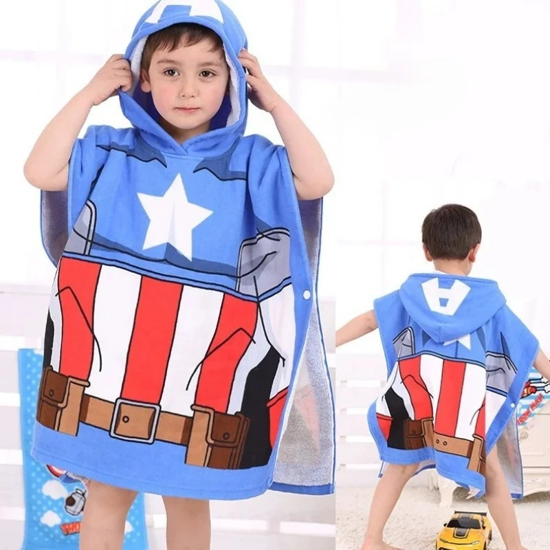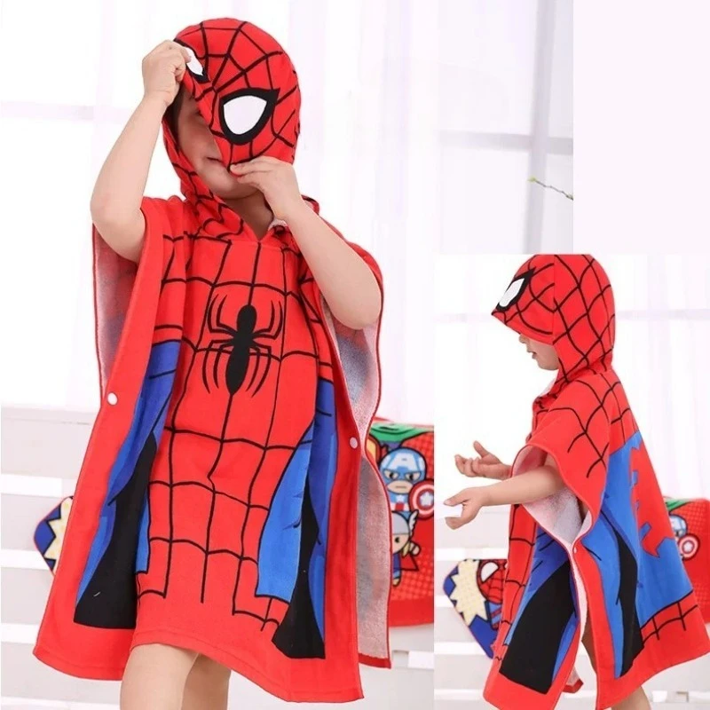 Marvel Hooded Cloak Bath Towel Avengers Superheroes Spider Man Soft Cotton Absorb Water Bathe Washcloth Baby Kids Beach Towel
