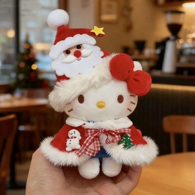 10cm/3.93in Christmas Hello Kitty Cotton Plush Doll Cloak Santa Claus Cute Stuff Backpack Accessories Collectible Ornaments Gift