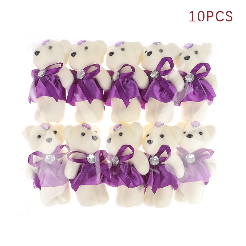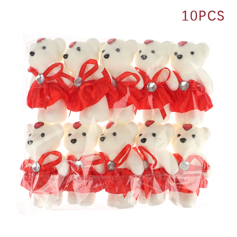 10Pcs 12cm Cartoon Teddy Bear Flower Bouquet Toy Graduation Birthday Wedding Party Decor